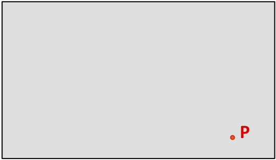 We begin with a set of data in two-dimensional graphic form, perhaps any of the methods you'll see elsewhere on this site: a treemap, dendrogram, network diagram, anything. It will be more useful if the data are naturally layered, so that when the user zooms in, more details can be gently revealed. In the sketch, we consider simply how to map point P, which can be anywhere in the gray rectangle which surrounds all of the data.