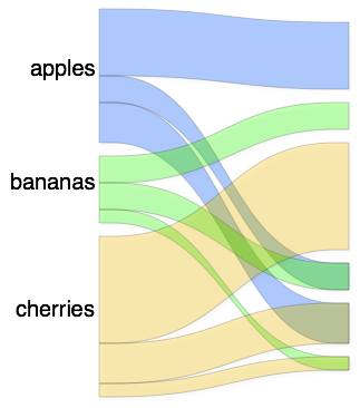 Perhaps surprisingly they are difficult to draw: there is no guaranteed solution and most methods are iterative or approximate. In this implementation the triple-intersection value is ignored, what you see is the best fit of three circle-pairs (pairs do have an exact solution). For these reasons I devised the "ribbon diagram". The left side shows the labels and color scheme and each category's proportion as if fully separate. The right side shows how the categories actually overlap; the heights of the edges are proportionate the input data. It is exact, there's no approximation necessary. It's quite possible to come up with data that break the diagrams, for example by forcing a triangle inequality. If you have a serious use-case where this is a problem, contact me. All the drawing is done in canvas, so it won't work in non-compliant browsers (i.e., IE). The animation is just for fun, unlikely to be used in a business application. Safari and Chrome do the animation very smoothly, while Firefox's canvas engine must be considerably slower since it's choppy (Mac 3.6.3). |