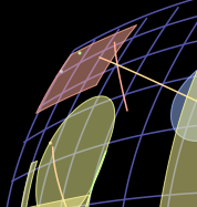 Nonlinear projections offer a general way to display large data spaces in a limited view, in direct analogy to the way a fisheye lens squeezes an entire forward view into a circle. This demo has all of the necessary geometry and primitives for drawing lines, rectangles, and circles in a distorted space. User mouse clicks are located in the data space, which initiates an animated change of viewpoint to bring the new object "under the lens." It looks complex but the geometry is simple.
